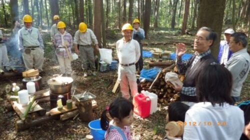 森友会の「地域の森を体験しよう」イベントが無事終了しました。 お客さんが少なかったのでのんびり楽しむことが出来ました。 新人のコック長が大鍋に美味しい豚汁を作ってくれました。 青竹の容器で炊いたご飯も試食させて貰いました。 竹が燃えて良い具合…