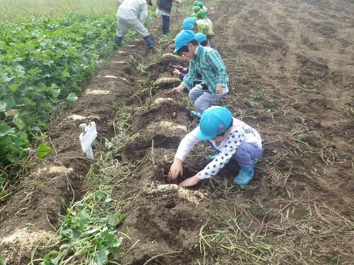 今日はこじんまりしたお客さんのお手伝いをしました。元手賀沼の底の土だった畑は幼稚園の子供には扱いにくいもので素手で掘れと言われたら大人でも難しいと思います。 というわけでしばらく掘って貰った後で大きなスコップで芋の株全体を持ち上げるお手伝い…