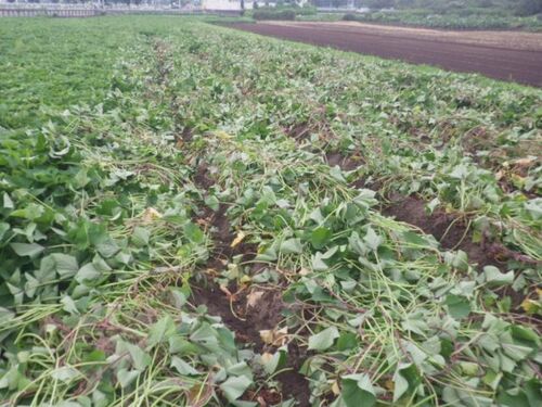 暑くなってサツマイモも元気になって蔓返し、草取り、土寄せをするとの招集が掛かりました。 朝の涼しいうちにやっていると言われたけどいくら頑張ったって早くはいけずいつもの時間に出勤。 元気に伸びたサツマイモの蔓は四方八方に伸びているのが互いに上…