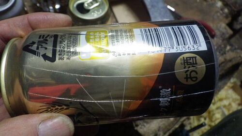 缶ビールの空き缶を使う風車を作って欲しいというご要望に応えて生産に取りかかりました。 先ず空き缶を用意します。味ではなくて見栄えの良いデザインの銘柄を選んで空き缶を作ります。 飲み終わったら一応水洗いします。 次いでカッターでカーブした切れ目…
