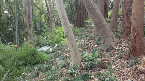 今年は雨で流れた日が多かったからと臨時の作業がありました。 竹に侵入された斜面のきつい昔の杉林。 ぶっとい孟宗竹が立っているのを切り倒すのは結構体力が要りました。 今日はチェーンソーで攻めました。 思い切ってチェーンをきつく張ったせいか一度は…